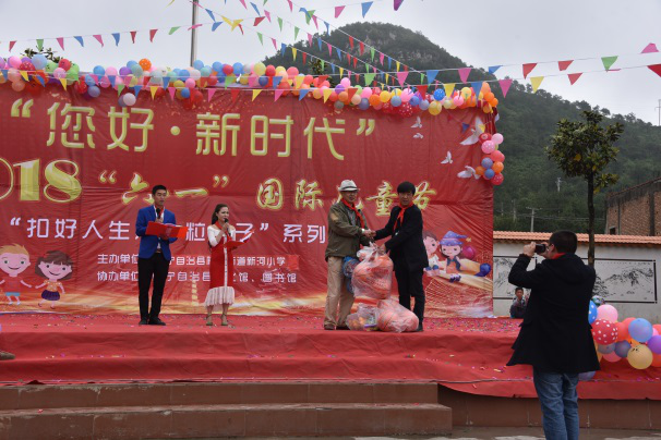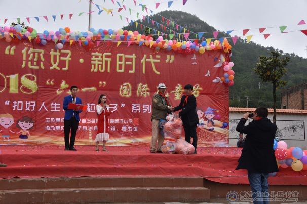 弹去五月的风尘,迎来了六月的欢乐时光。为了让孩子们能开心的度过自己的节日,陕桥街道新河小学于2018年6月1日,在学校内组织开展了主题为“扣好人生第一粒扣子”的六一儿童节庆祝活动。县图书馆相关领导作了精彩的致辞,并对全体少年儿童致以节日的祝福。此外还为孩子们带来了蓝球、羽毛球、乒乓球、跳绳等价值2000元左右的礼物。