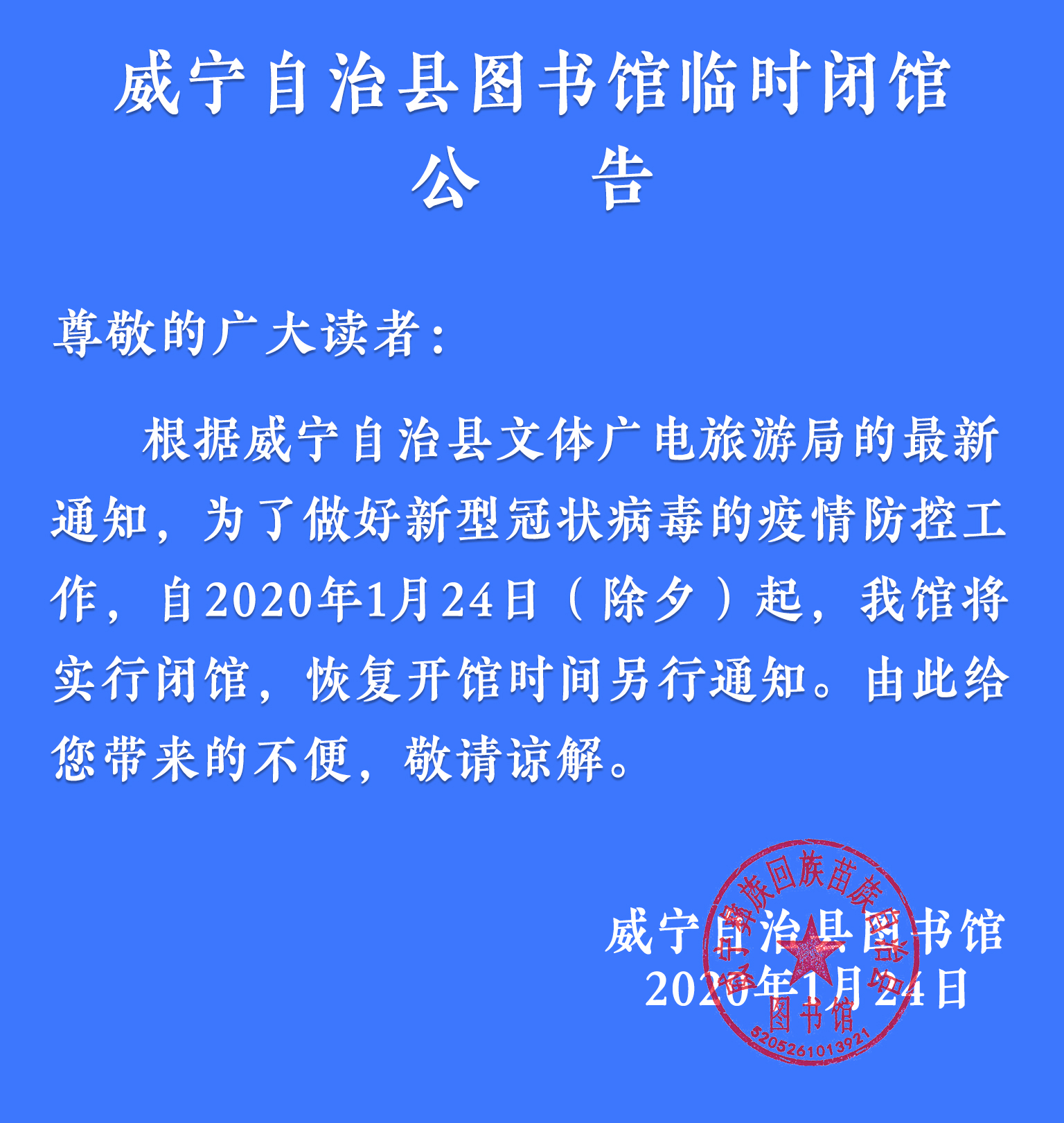 威宁自治县图书馆临时闭馆公告
