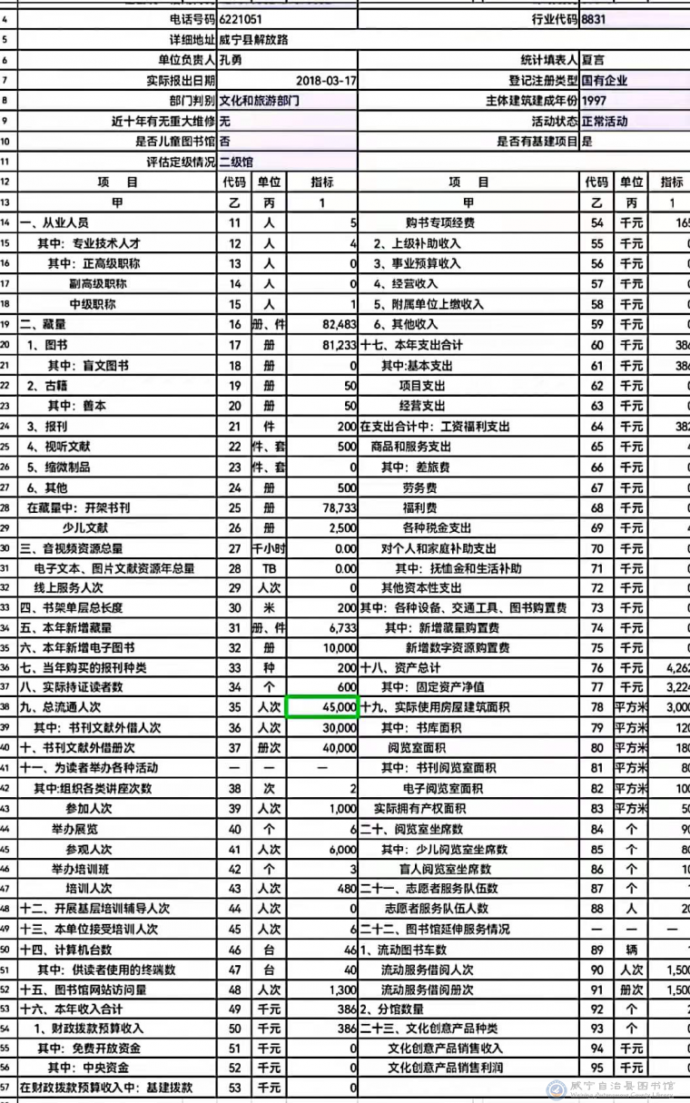 2017年威宁县图书馆年报数据