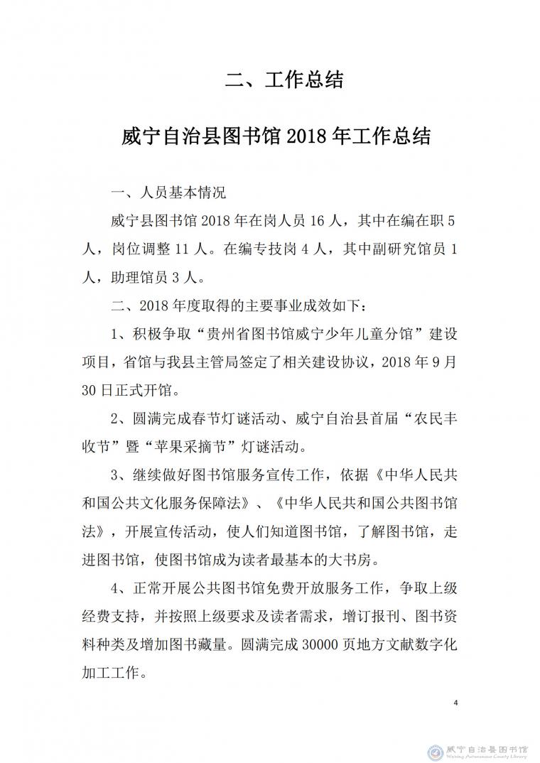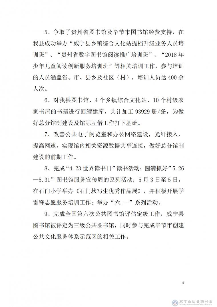 威宁县图书馆2018年年报报告